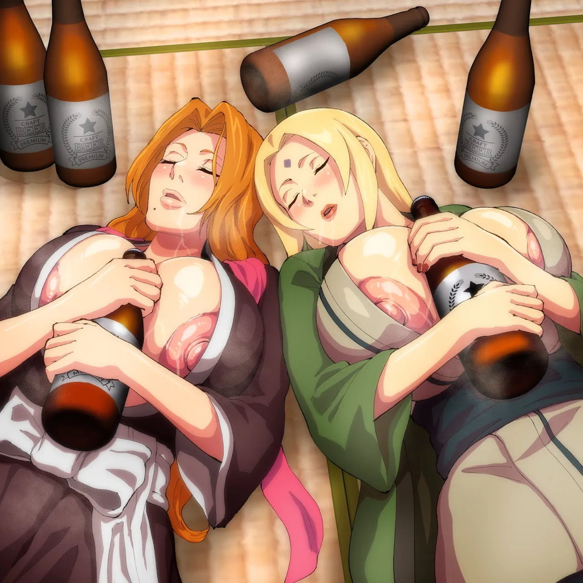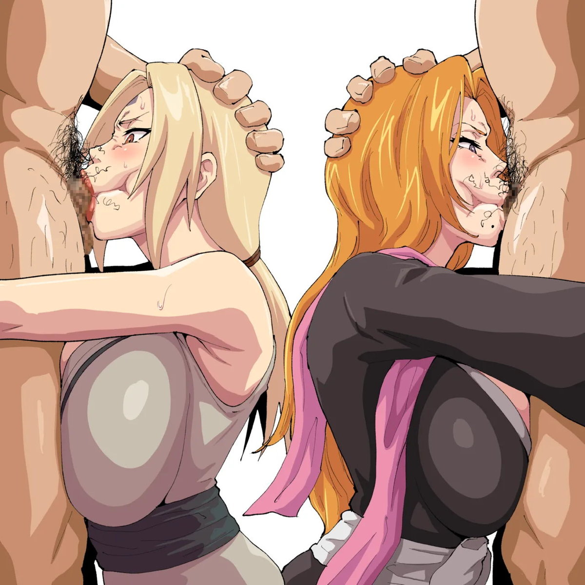 ヒナタ&綱手がWフェラをして顔射されちゃう!!